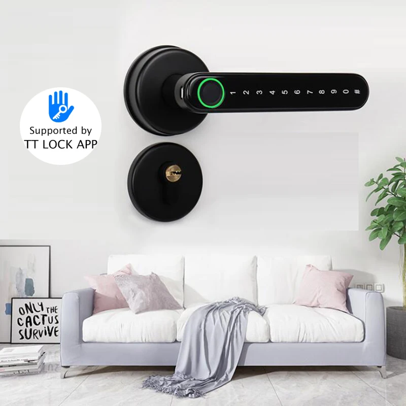 Fingerprint Door Lock Handle Code Bluetooth IOS Android Phone One time code Unlock Record Wooden Door Electronic Lock