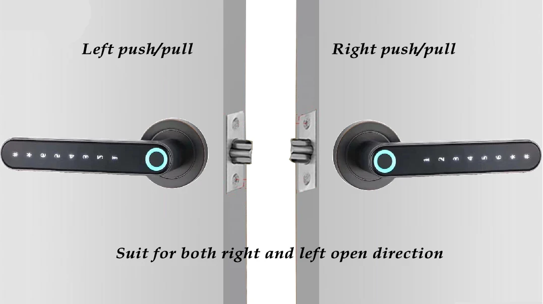 NNote before installation, Please follow the manual carefully, otherwise it will unlock no matter you press finger or not!Refer to installation video in youtube please. https://youtu.be/mP0SXV7IvtAKit1: Red bronze lock with fingerprint, coed,Bluetooth unlock function.Kit2: Gray lock with fingerprint, code, bluetooth unlock function.Kit3:Silver lock with fingerprint, code, bluetooth unlock function.Phone APP is called iE lock◊ Unlock ways: Code, fingerprint and bluetooth.◊ Suit for left/right push, left/right pull type of door. ◊ Material Made: Zinc alloy◊ Suit for door thickness between 38-42mm. If door thickness is less than 38mm, cut Square stick to suitable length. If door thickness is more than 42mm, a spring should be put into back handle and it will be suit for 45-50mm thickness door.◊ Smart handle design: The front handle inside contains the fingerprint sensor, the chips, Lithium battery, and clutch components. Handle needed to be charged from front handle. No battery in back handle.◊ Up to 30 fingerprint users and 192 code users, 146 bluetooth users.◊ 800mAh Rechargeable lithium battery. 3000 times to open door after a full charge. ◊ The most convenient way of unlocking: Press the fingerprint sensor and turn the handle to unlock. ◊ Easy to install. No wire connection is needed.◊ Low power reminding.◊ Application: Home,Office,Apartment, Department