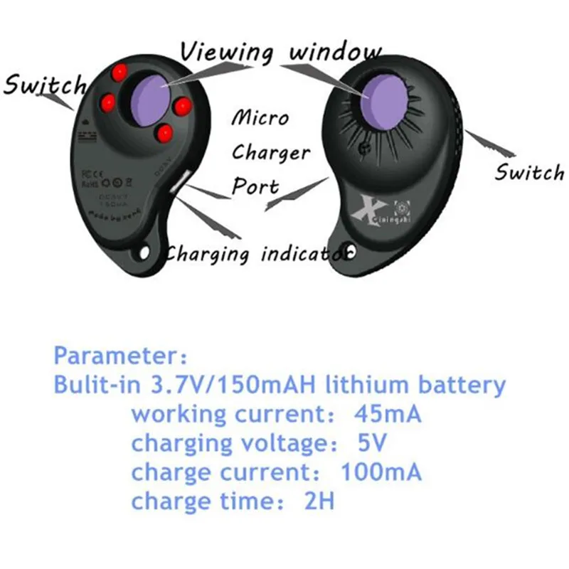 | Portable Anti-Spy Hidden Camera Laser Detector Spy Camera Finder with Four IR Light |