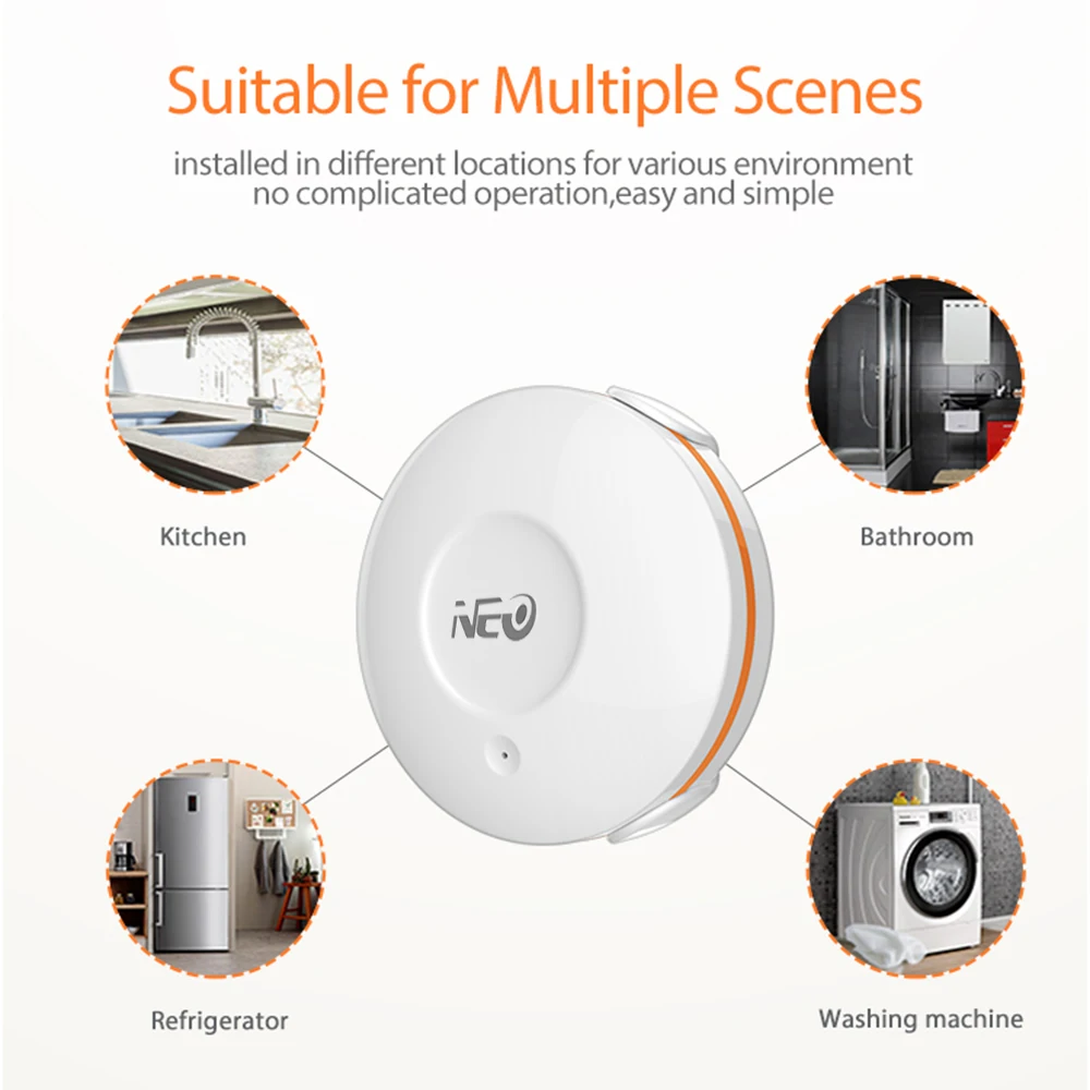 | NEO Tuya ZigBee Smart Home Water Leak Sensor Wireless Flooding Detector Water Leakage Detection Alert Water Level Overflow Alarm |