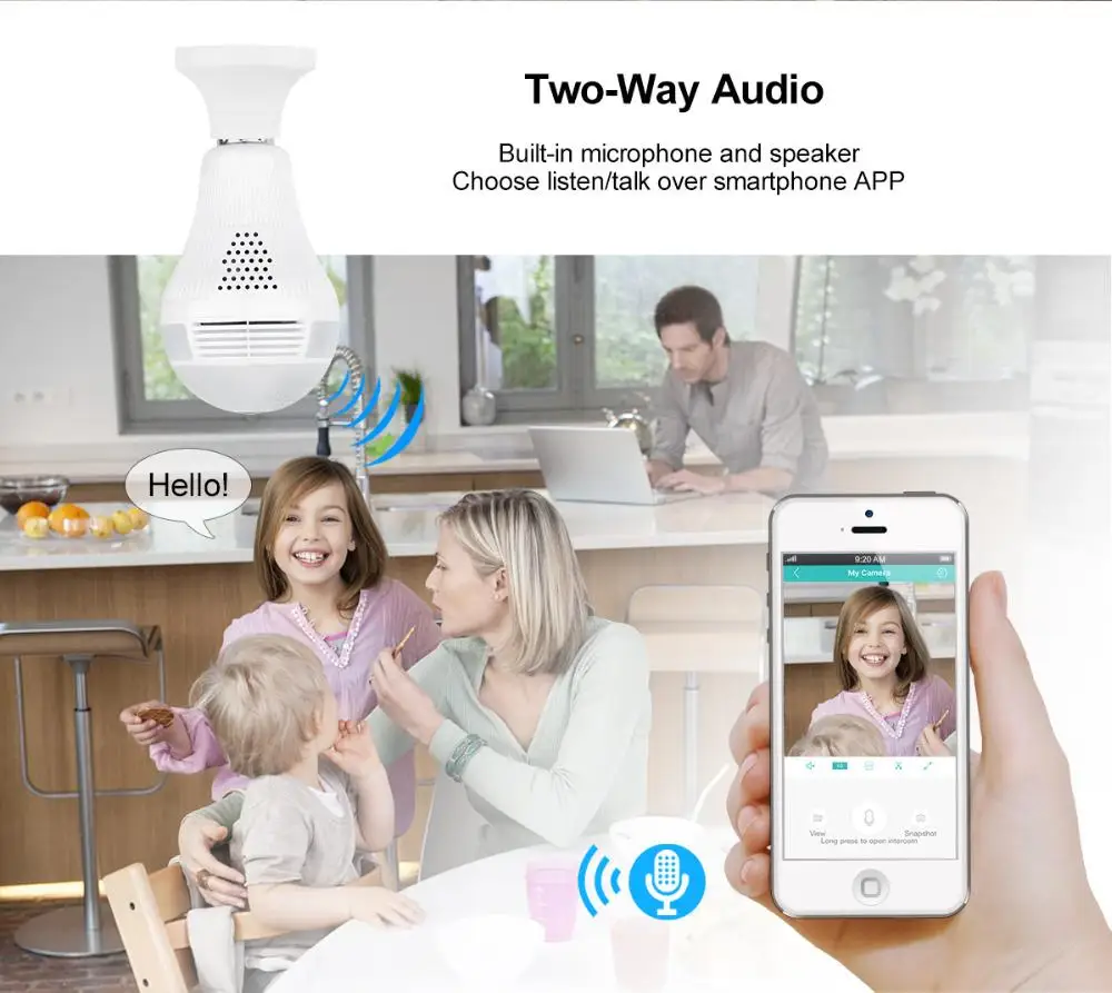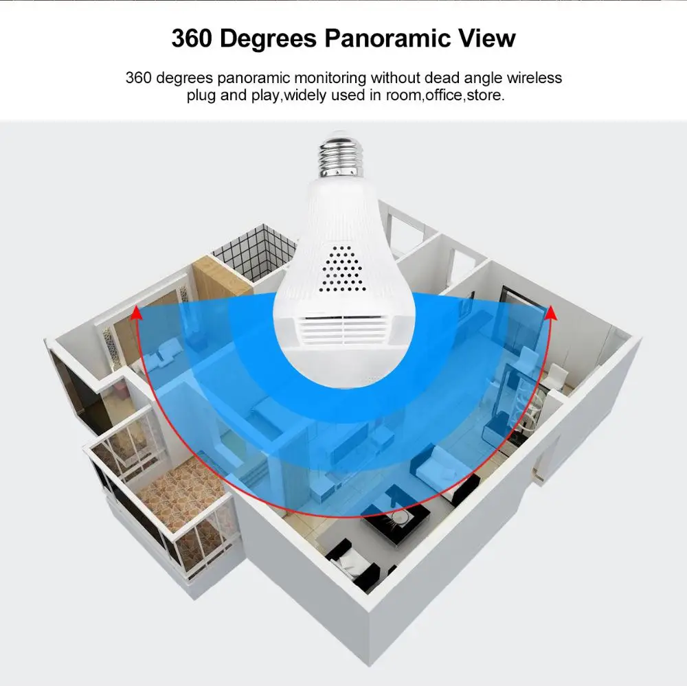 The best product you are looking for is "EVKVO 360 Degree LED Light 1080P Wireless Panoramic Home Security Security WiFi CCTV Fisheye Bulb Lamp IP Camera Two Ways Audio". This product is available and ready to be purchased. Get attractive discounts every time you shop in our store (aliexpress.com). Aliexpress also provides a coupon of $ 3 for the first buyer to shop there. don't forget to bookmark our store page so you can go shopping again anytime..