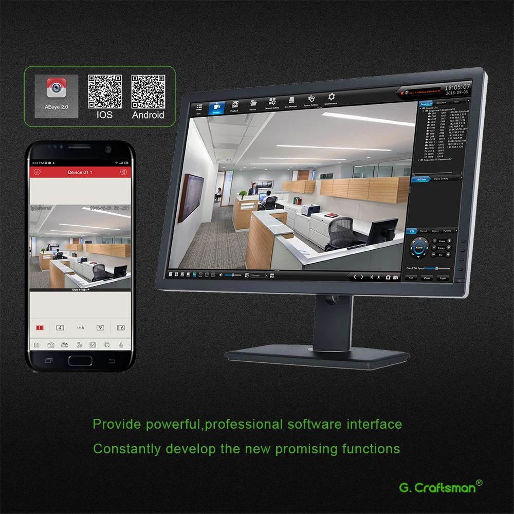 ·The greatest feature of this NVR is its good compatibility. ·Besides the private protocol with G.Craftsman ,it also supports ONVIF2.6( Highprofile S, Highprofile G) ·Can be connected to network cameras that comply with ONVIF, RTSP standards made by many other major manufacturers, such as HIKVISION, DAHUA, XM, etc.