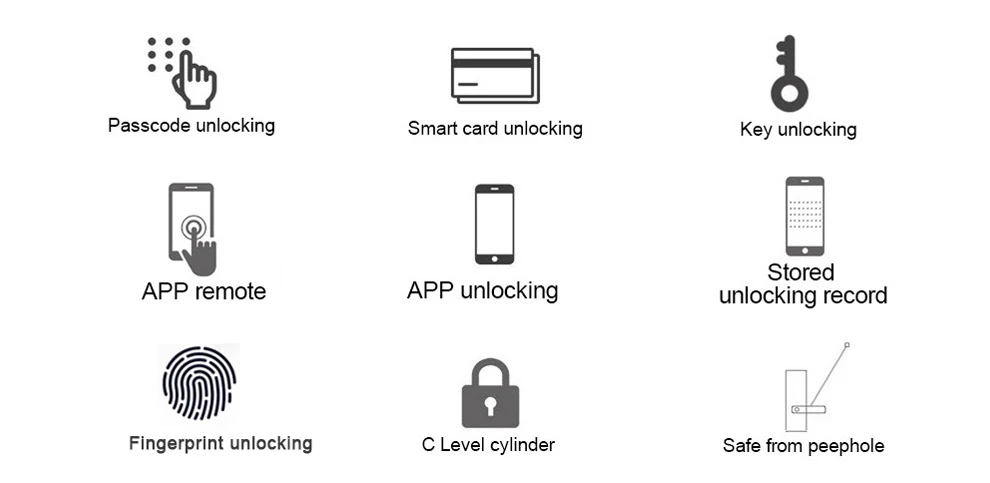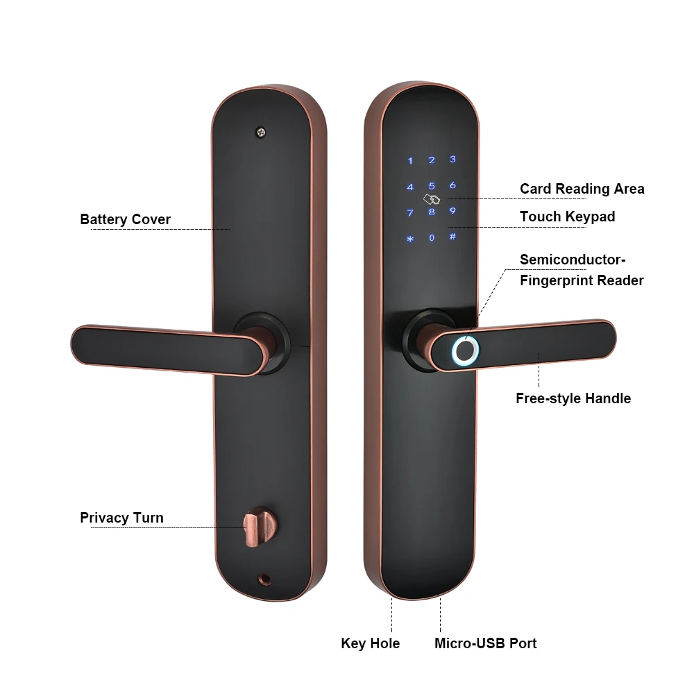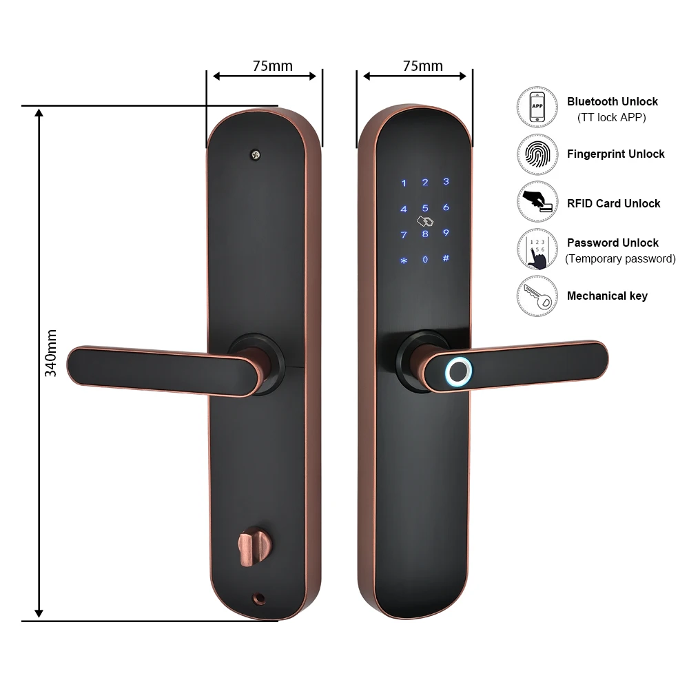 - Unlock method: Bluetooth,APP password,Fingerprint, Password,Card, Key