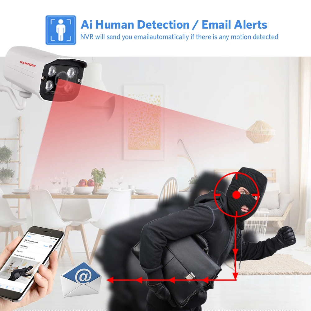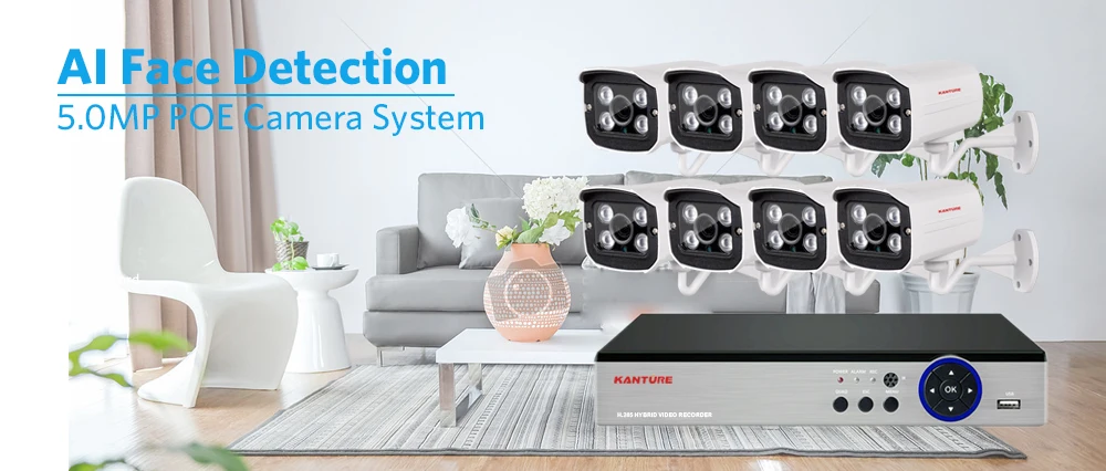 | KANTURE H.265+ 4CH 8CH 5MP NVR POE CCTV Security Camera System Ai face record Audio Outdoor IR-CUT CCTV Video Surveillance set |