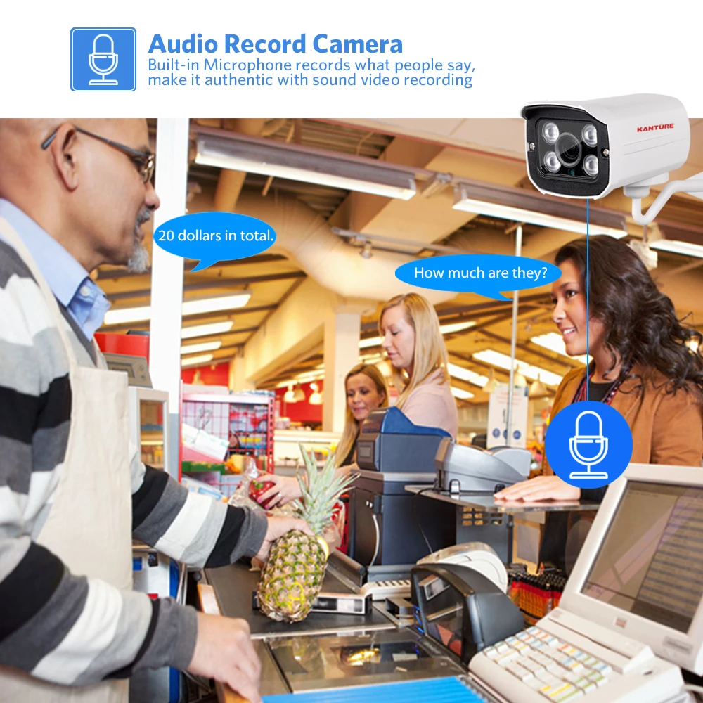 KANTURE H.265+ 4CH 8CH 5MP NVR POE CCTV Security Camera System Ai face record Audio Outdoor IR-CUT CCTV Video Surveillance set