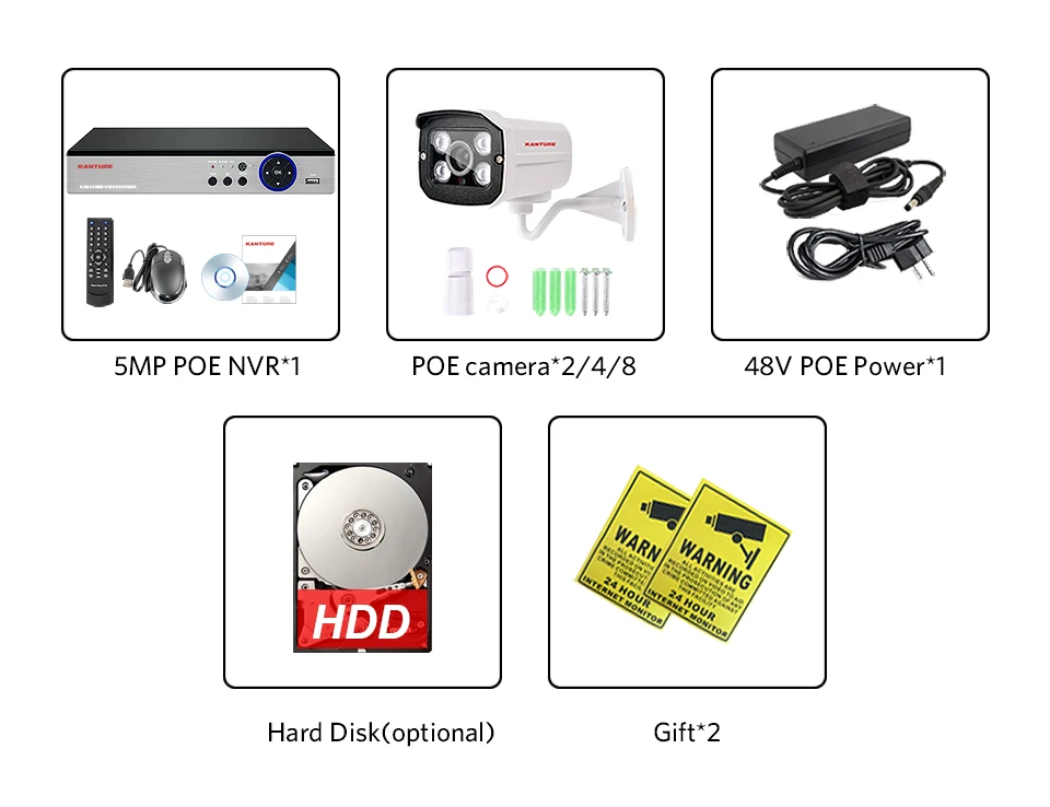 8CH Set: 8CH POE NVR + 4 Cameras / 8CH POE NVR + 8 Cameras for Optional