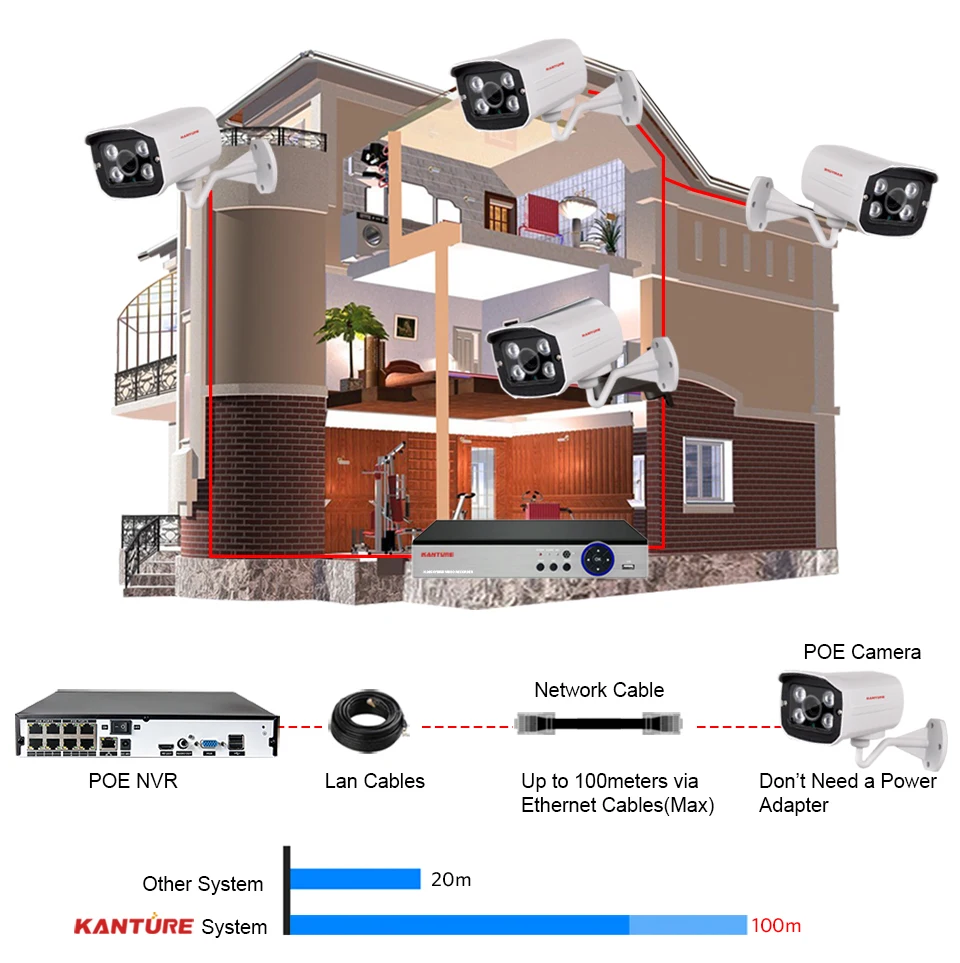 POE System max support 100m POE cables transmission distance which greatly increases home installation convenience.