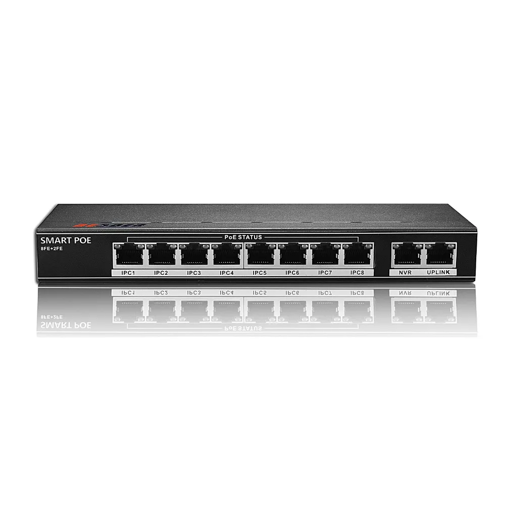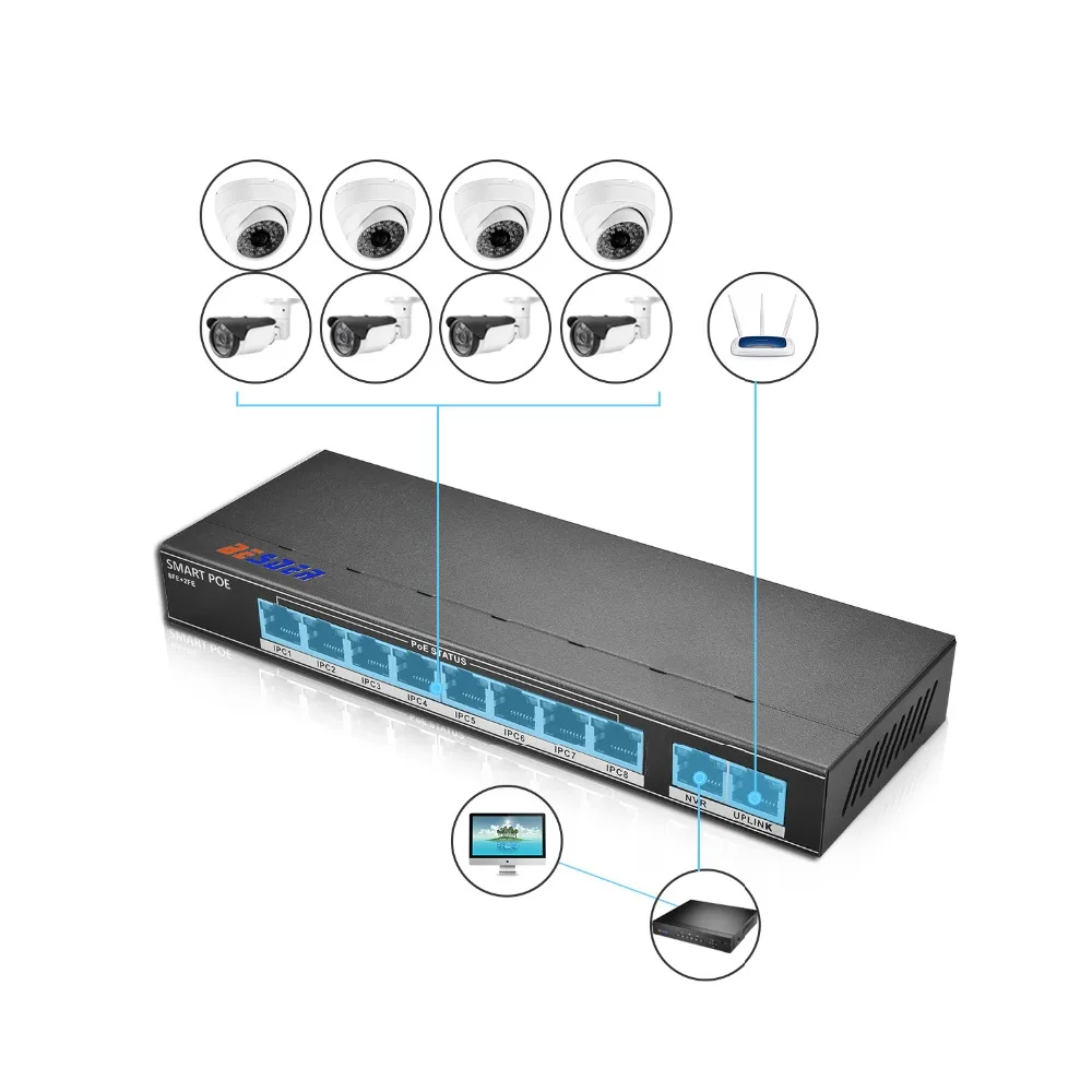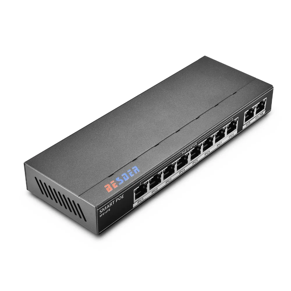 Best Price Comparison With BESDER 802.3af/at 8CH POE Switch 10 Port 10/100 Mbps CCTV Switch 250 signal transmission 8 POE Ports 1 NVR+ 1 Uplink Port 123.2W
