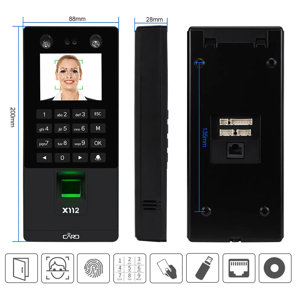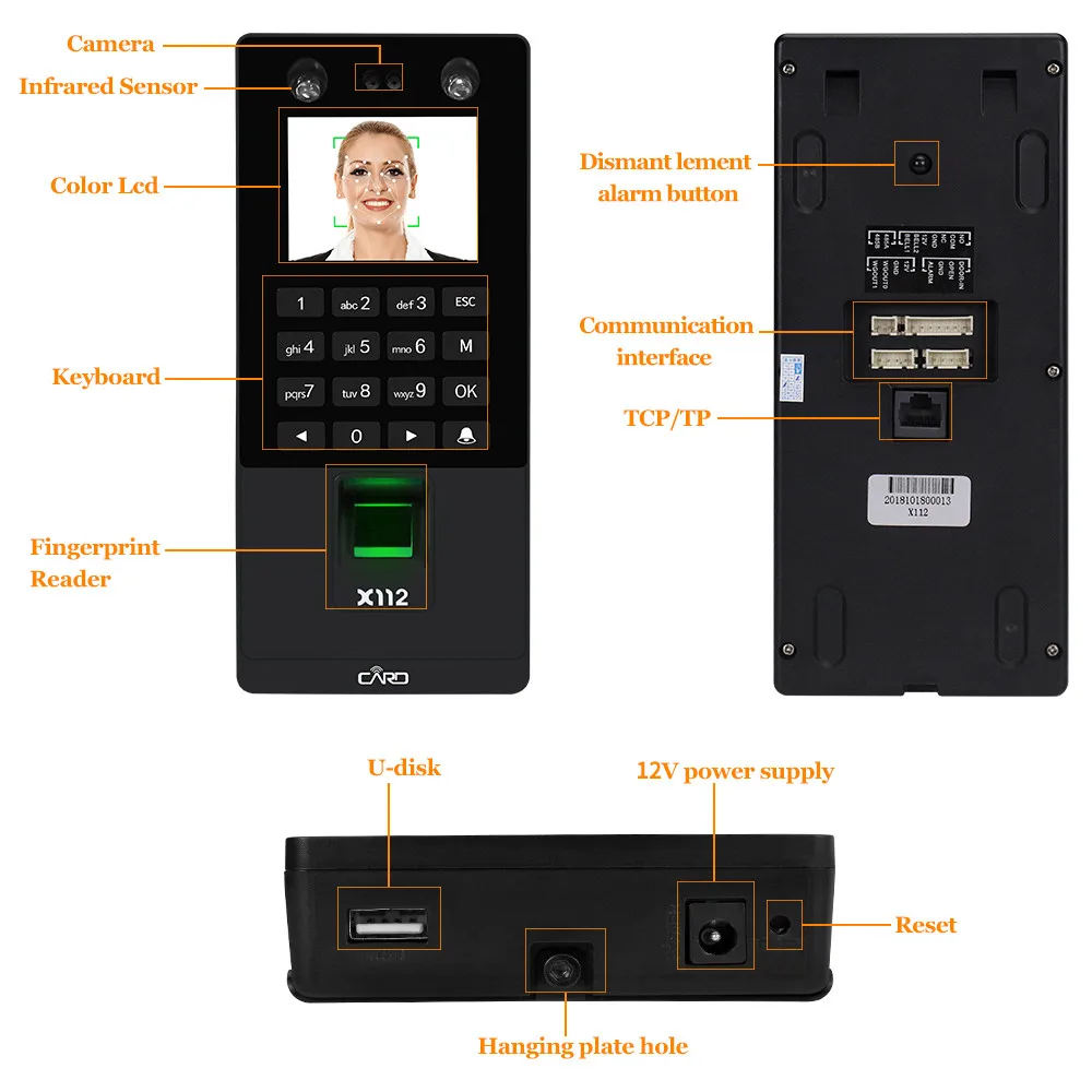 Model: X112 & X112-KSupports TCP/IP network, Supports USB download / upload, Not supports RFID cards (X112) / Supports RFID cards (X112-K)