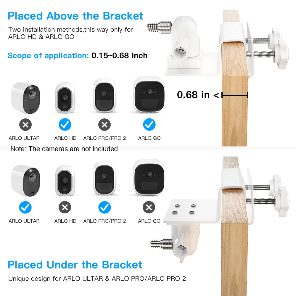 【Unique design】This strong Gutter mount bracket is designed for Arlo HD/Arlo Pro/Arlo Pro2/Arlo Go/Arlo Ultra/WYZE Cam Pan/All-new Ring Stick Up Cam Battery/All-new Ring Stick Up Cam Wired. (Note: camera is not included)