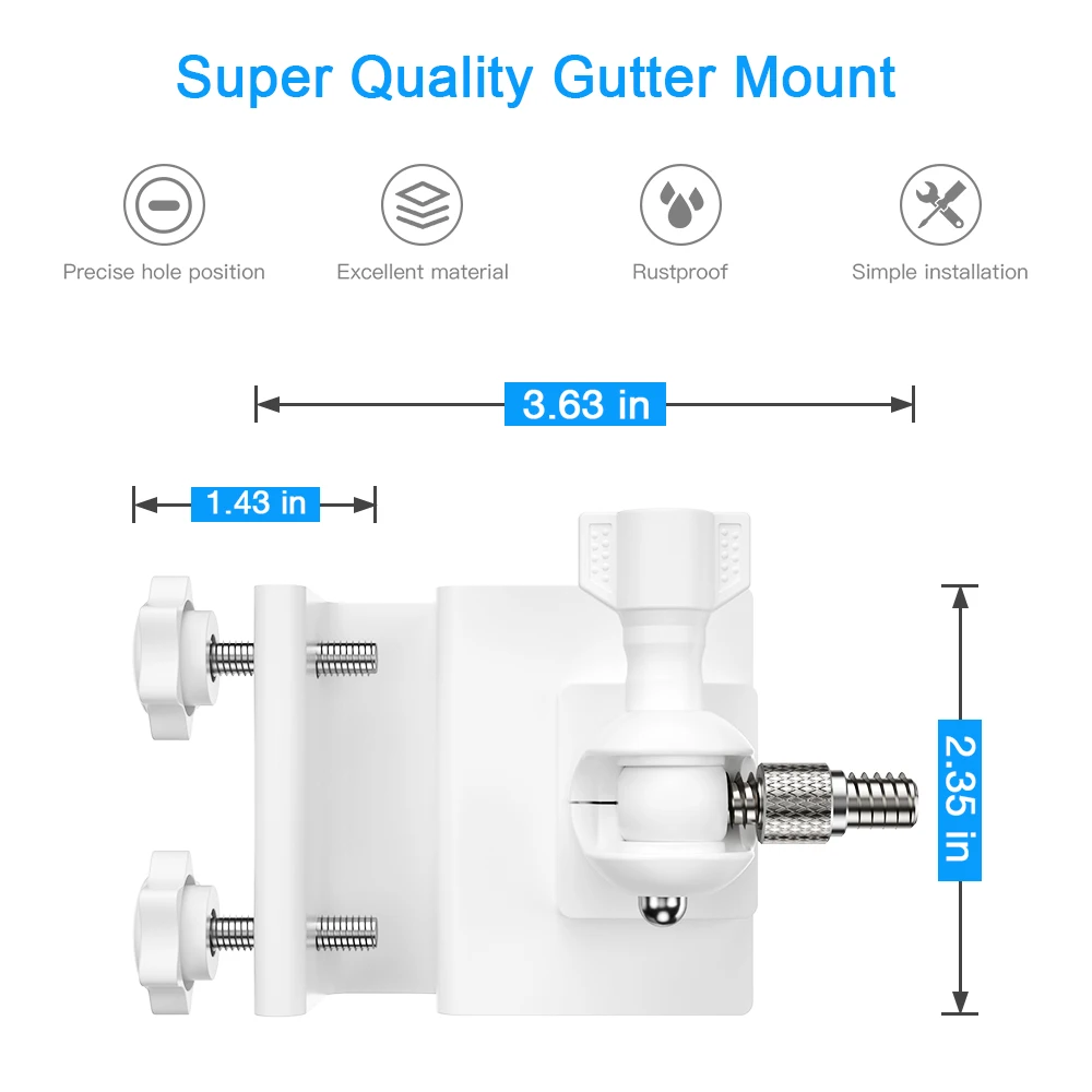 【Any angle adjustment】The mount is easily adjustable with 180-degree swivel, which allows you to install with the appropriate angle. Gutter mount provides a 90-degree tilt for better field of view.