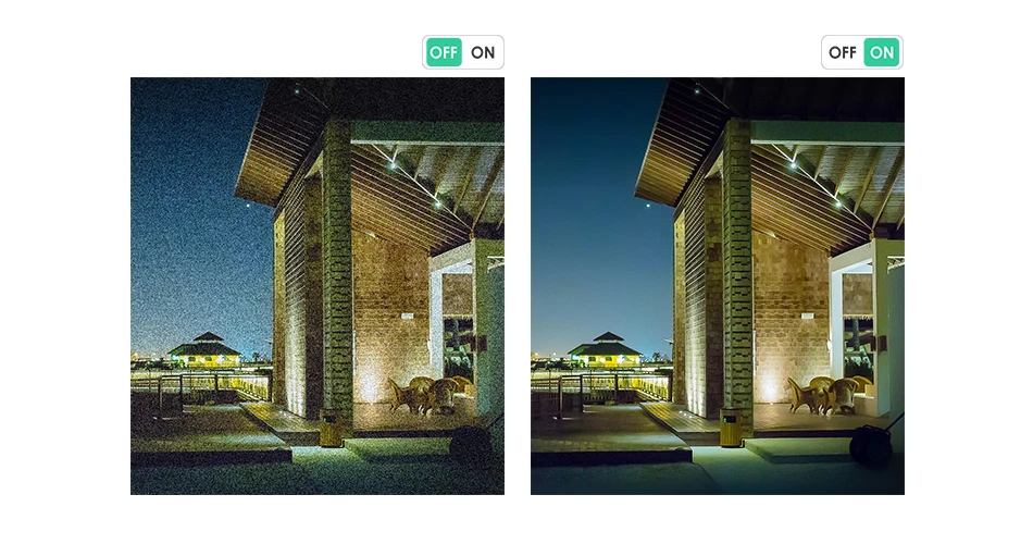 3-DNR (Digital Noise Reduction) technology filters out digital noise from low-light scenes, as well as any noise caused by motion. By eliminating graininess, you can see more fluent image in better clarity, sharpness and get improved motion detection.