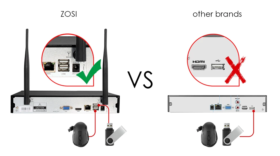 Instead of wireless transmission,you can also choose network cable to connect IP camera with NVR via a router.Both way you will get smooth and clear video.1. Wireless transmission