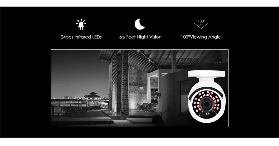 Just like a faithful knight of darkness, this wireless IP camera can offer you 24/7 ceaseless protection, from dawn to dark.Built-in 24pcs infrared LEDs and IR-CUT technology enable excellent night vision up to 65ft, everything is clear and sharp even in the pitch dark.