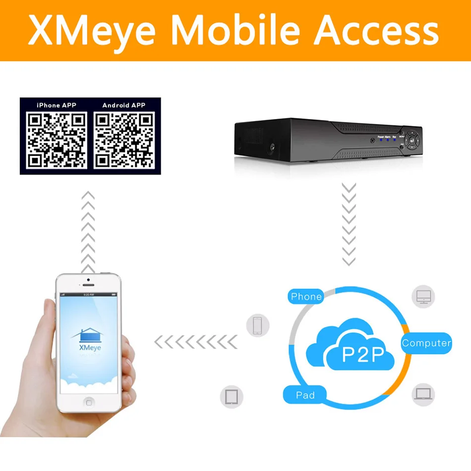 Feature: Support VGA, HDMI full HD output simultaneously; Support ONVIF; access third party; Support multiple cloud technology, network penetration, alarm information pushed to your phone and other functions;