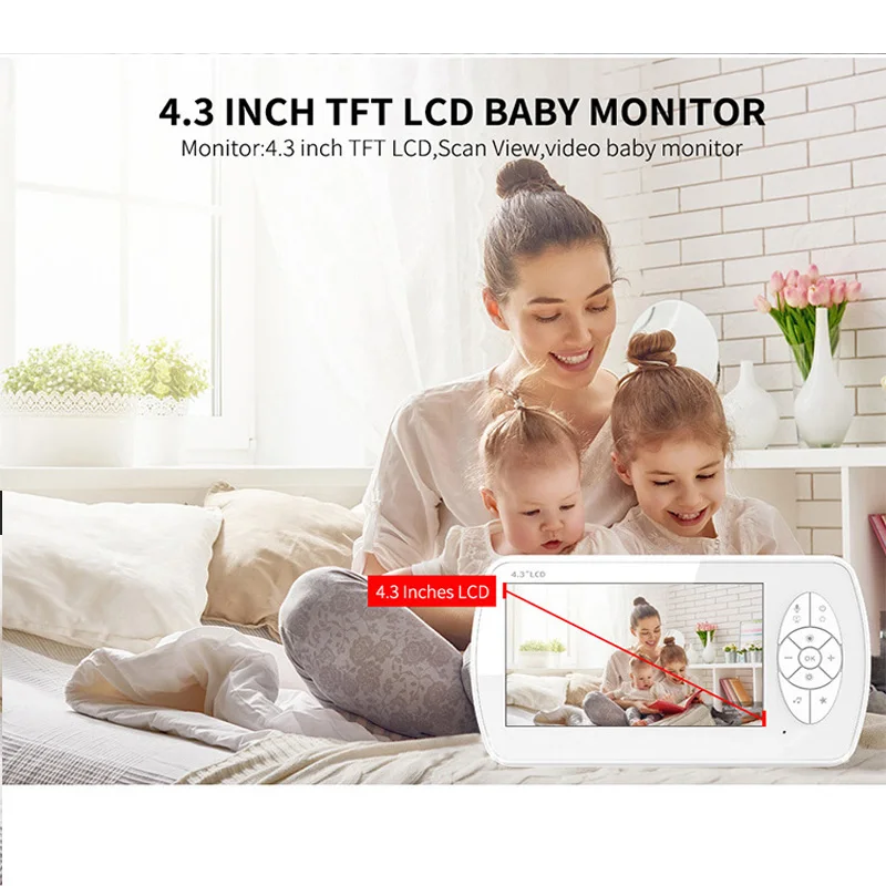 | 4.3 inch 1080P Wireless Baby Monitor Automatic LCD Audio Video Security Mini Camera Night Vision Baby Room Temperature Detection |