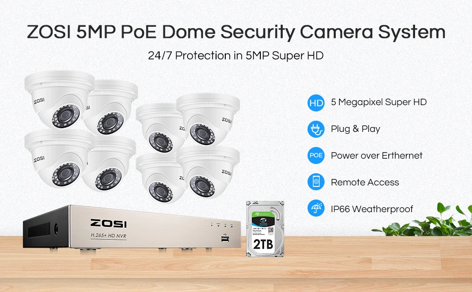 Best Price Comparison With ZOSI H.265+ 8CH 5MP POE NVR Kit CCTV Home Security System 8pcs 5MP Waterproof Dome IP Camera Home Video Surveillance Set