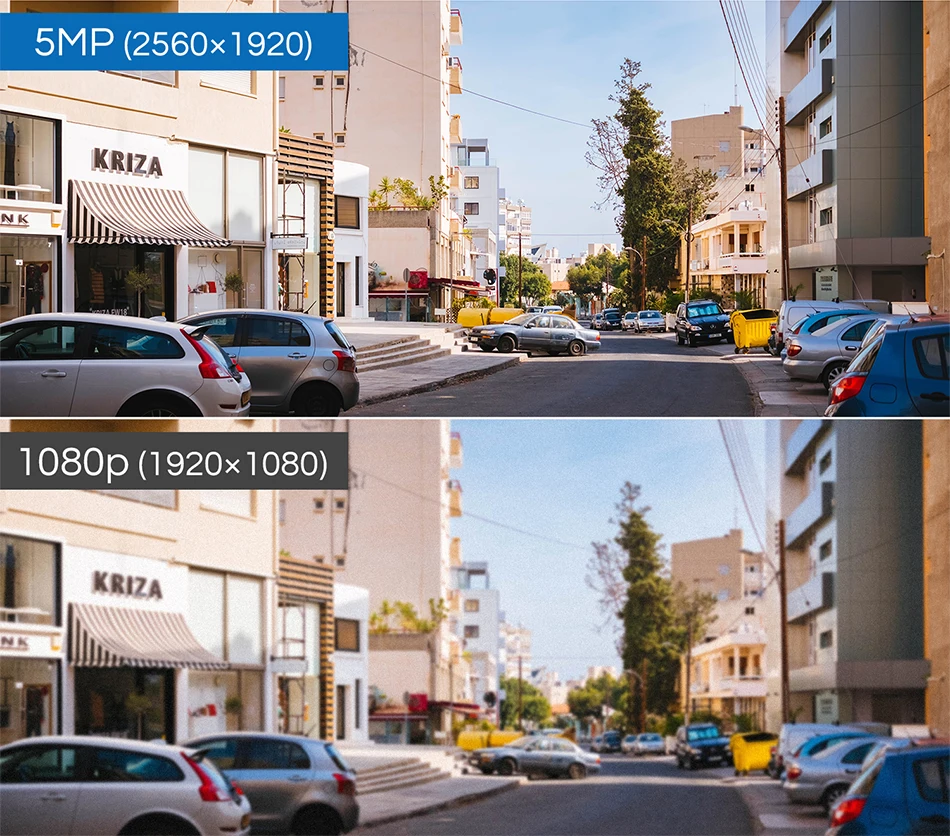 Super HD 5MP IP camera with a pixel resolution of 2560 x 1920, nearly 2.4X of 1080p full HD (1920 x 1080px). Bring You to a Whole New Viewing Experience.