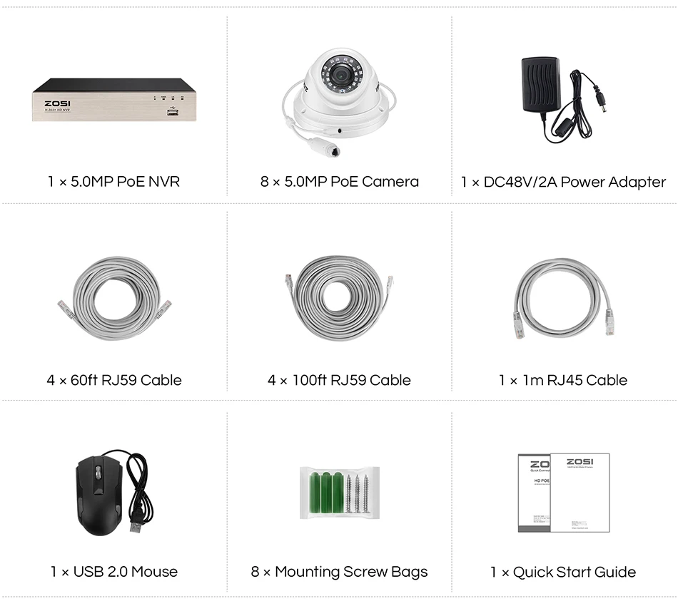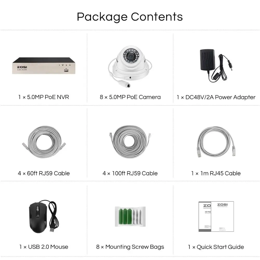 | ZOSI H.265+ 8CH 5MP POE NVR Kit CCTV Home Security System 8pcs 5MP Waterproof Dome IP Camera Home Video Surveillance Set |