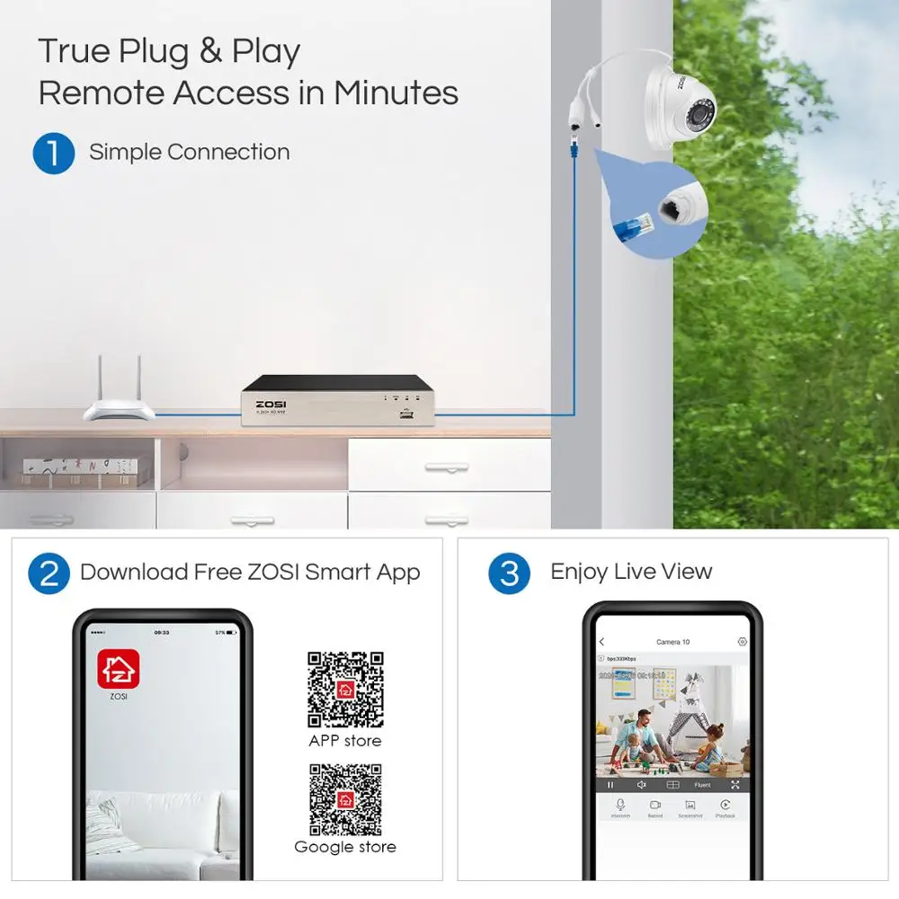 The best product you are looking for is "ZOSI H.265+ 8CH 5MP POE NVR Kit CCTV Home Security System 8pcs 5MP Waterproof Dome IP Camera Home Video Surveillance Set". This product is available and ready to be purchased. Get attractive discounts every time you shop in our store (aliexpress.com). Aliexpress also provides a coupon of $ 3 for the first buyer to shop there. don't forget to bookmark our store page so you can go shopping again anytime..