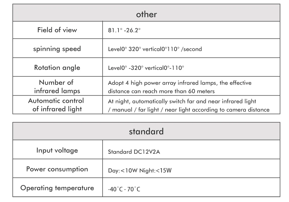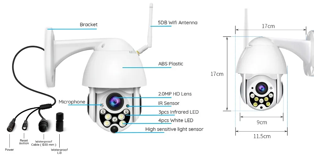 Feature: 1. Smart Color Night Vision Built-in 3 Array IR LED and 4 White LED, supports max 30-50 meters IR Night Vision distance. 2.Motion Detection and Alarm Audio Function Once the motion detection is triggered, you will know it in the first time. 3.wireless(Wifi) and Wired two Mode You can switch it easily in app. 4.Two-Way Audio in Real Time Enjoy family talking anytime and anywhere. 5.PTZ feature Pan 320 degree/ Tilt 90 degree/ 4X Digital Zoom. 6.App and browser supports Remotely View via the App YCC365 Plus on Smartphone or browser on computer. Package Included: 1*1080P IP Camera 1*Power Adapter 1*User Manual 1*Screw Driver & screw bag