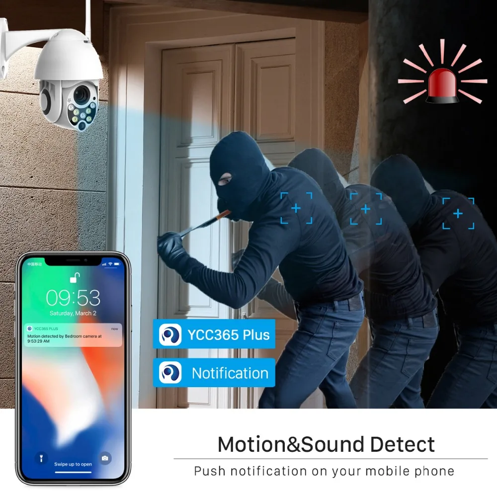 | BESDER 1080P PTZ Speed Dome IP Camera Outdoor Waterproof IP66 WiFi Security Camera 4X Digital Zoom Two Way Audio App YCC365 |