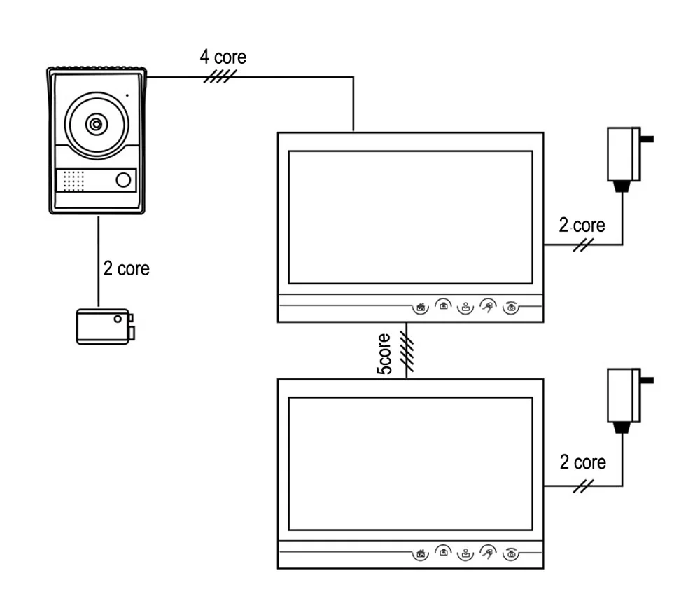 NOTE: This camera can ONLY work with any of monitor from the following picture. With same camera and monitor, you can enjoy the kits including 1 camera with 1 monitor(1V1), 1V2, 1v3, 1v4 to meets your requirements for a villa or department. For other functions, Please check your indoor Monitor unit.