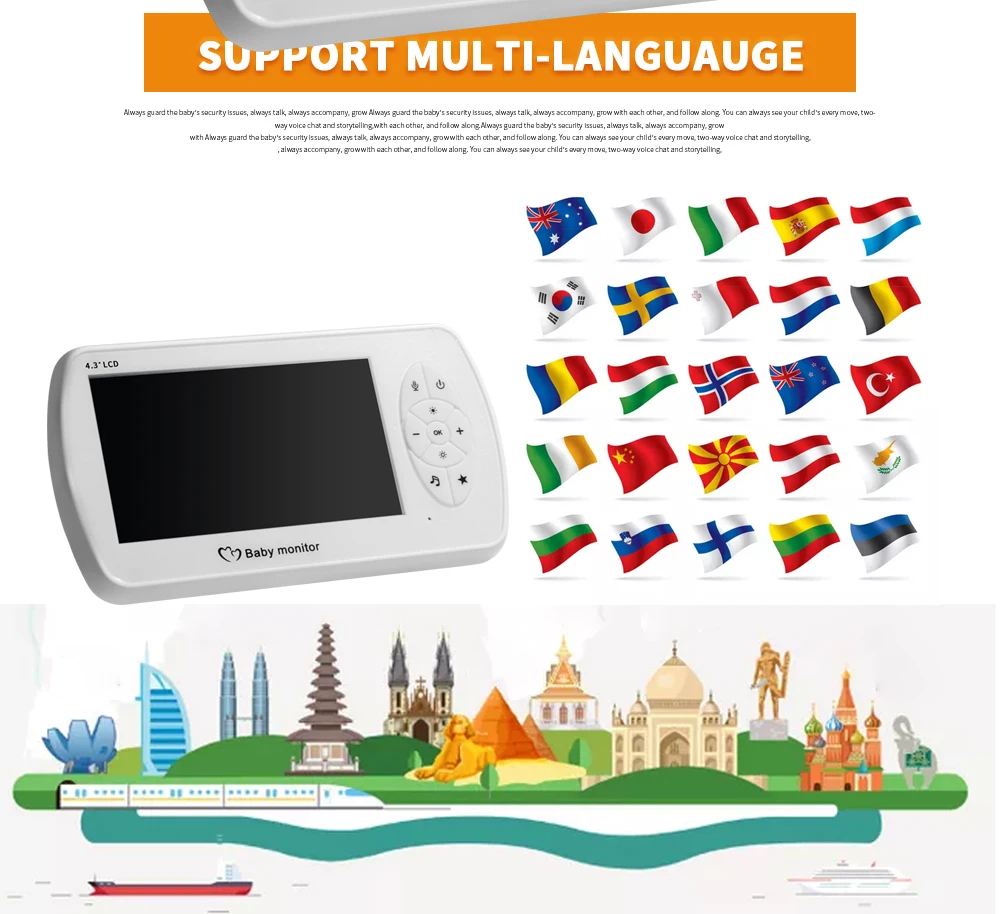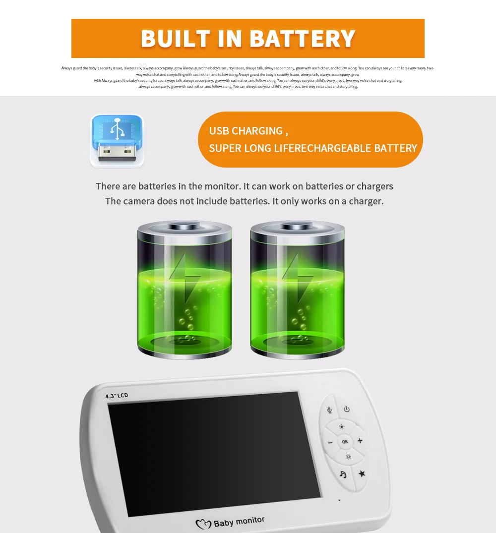 The 640*480P camera resolution can shoot smooth and clear videos, which can be played and played on the 4.3-inch LCD screen equipped with our baby monitor.