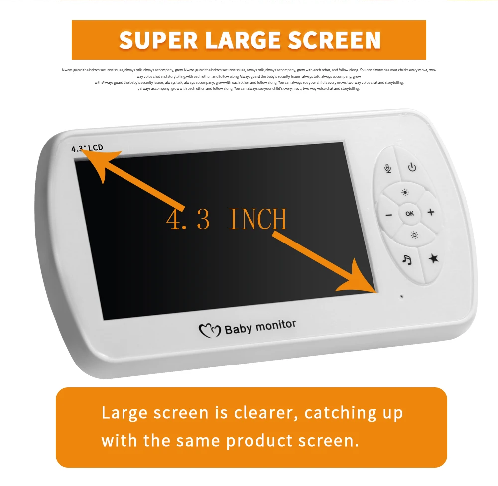INQMEGA Wireless Video Babyphone Baby Monitor 4.3 Inch Camera Night Vision Temperature Monitoring Baba Eletronica Babyfoon