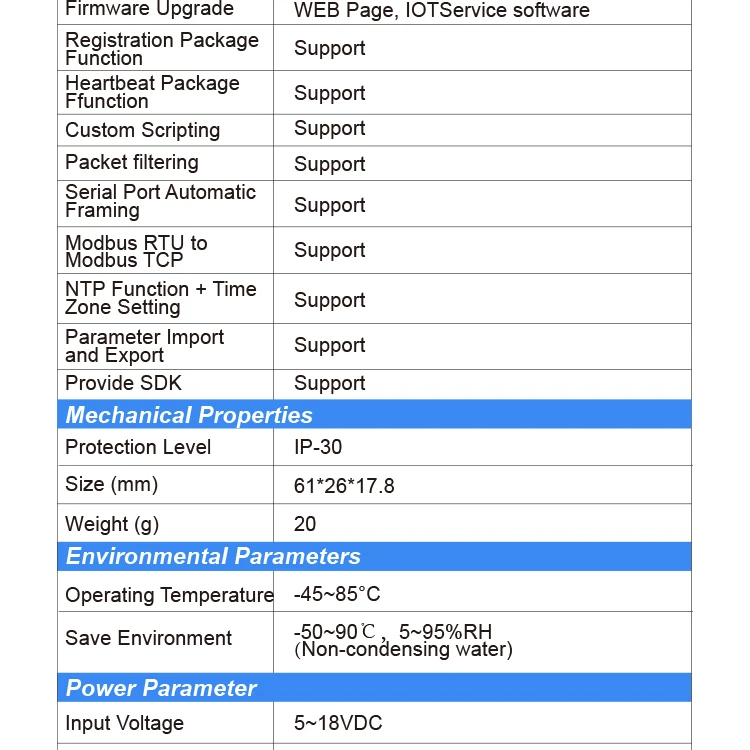 - Support Webpage Easy Configuration or PC IOTService Tool