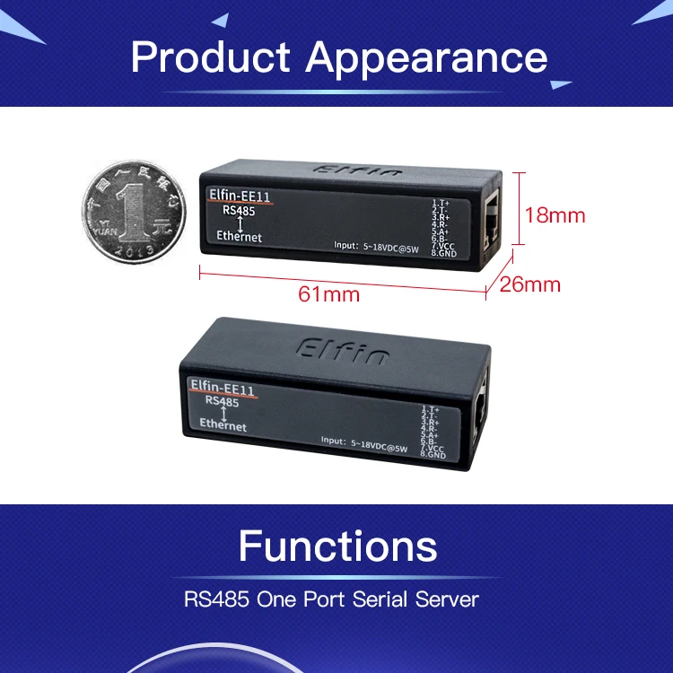 | Serial Port RS485 To Ethernet Device Server IOT Data Converter Support Elfin-EE11 TCP/IP Telnet Modbus TCP Protocol |