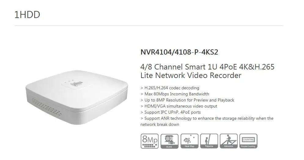 The best product you are looking for is "Dahua NVR 4K Video Recorder NVR4104-P-4KS2 NVR4108-P-4KS2 P2P 4Ch 8Ch 4PoE port Up to 8MP Resolution H.265 Lite Network". This product is available and ready to be purchased. Get attractive discounts every time you shop in our store (aliexpress.com). Aliexpress also provides a coupon of $ 3 for the first buyer to shop there. don't forget to bookmark our store page so you can go shopping again anytime..