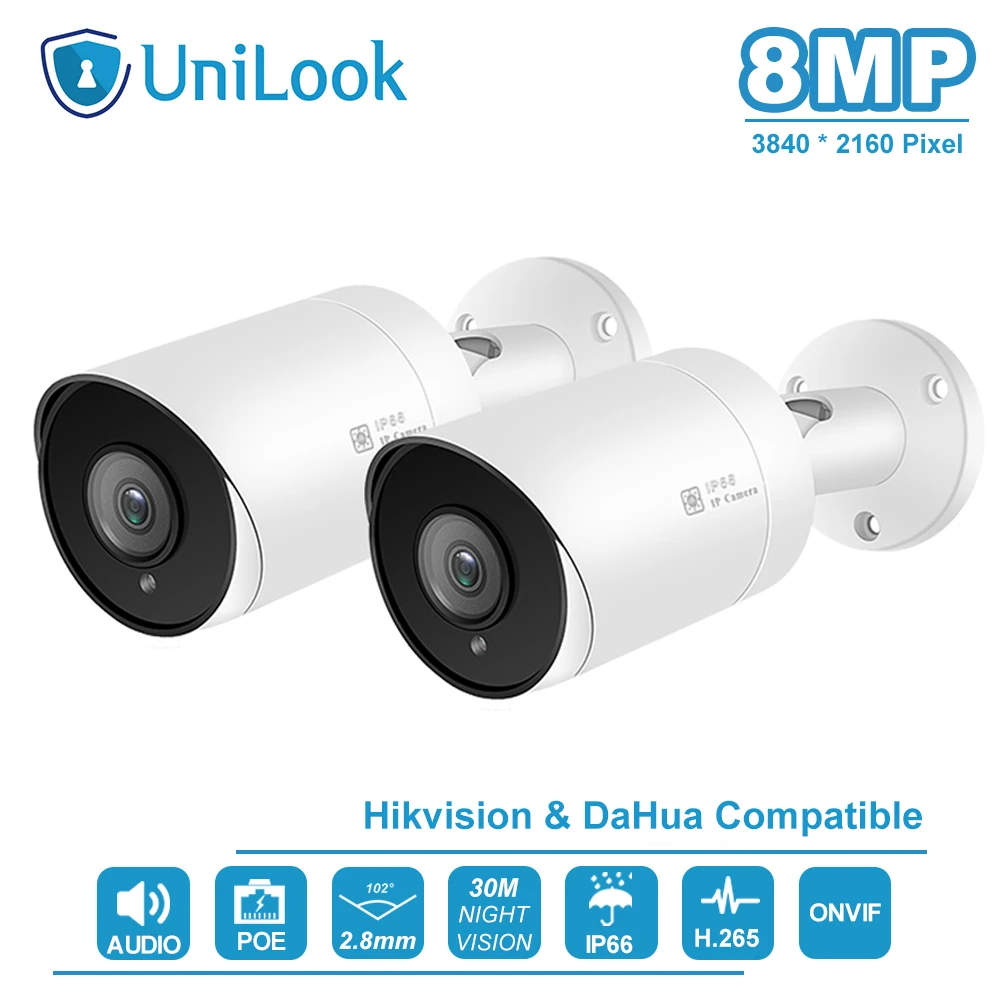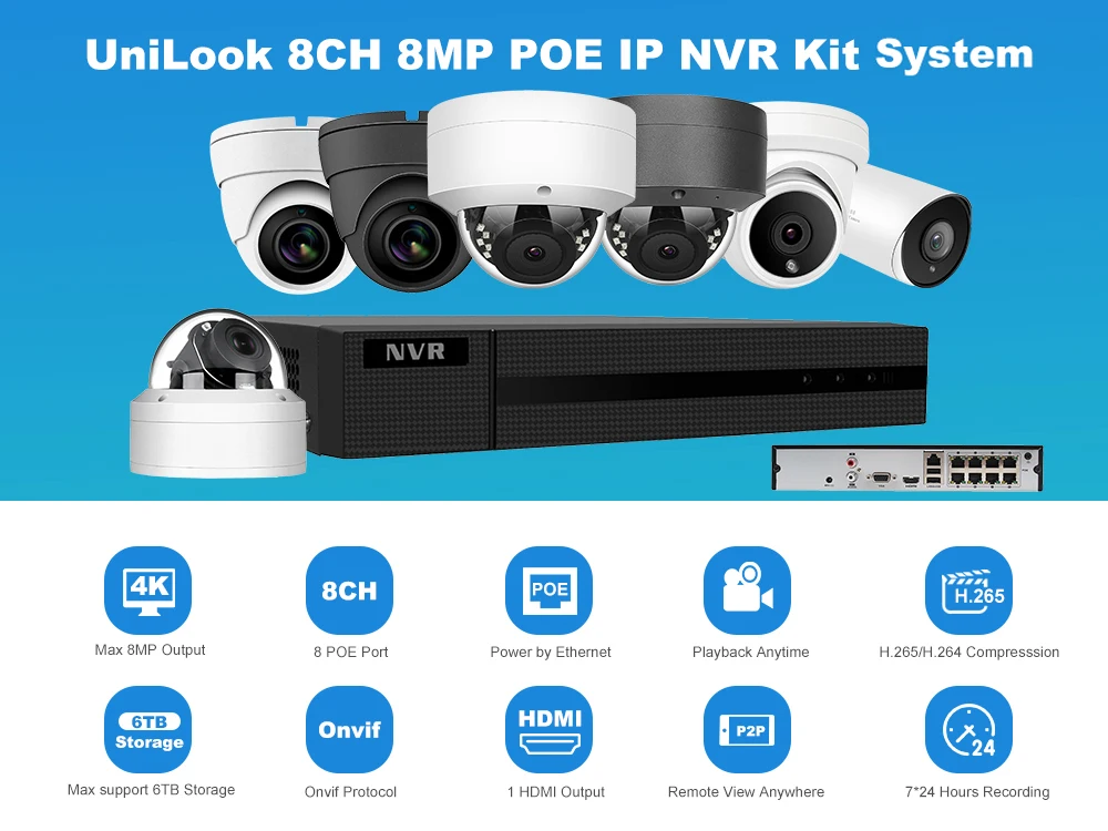 UniLook 8CH NVR 4/6/8Pcs 8MP 4K Bullet POE IP Camera NVR Kit Outdoor Security Systems Night vision Onvif H.265 P2P view NVR Kits