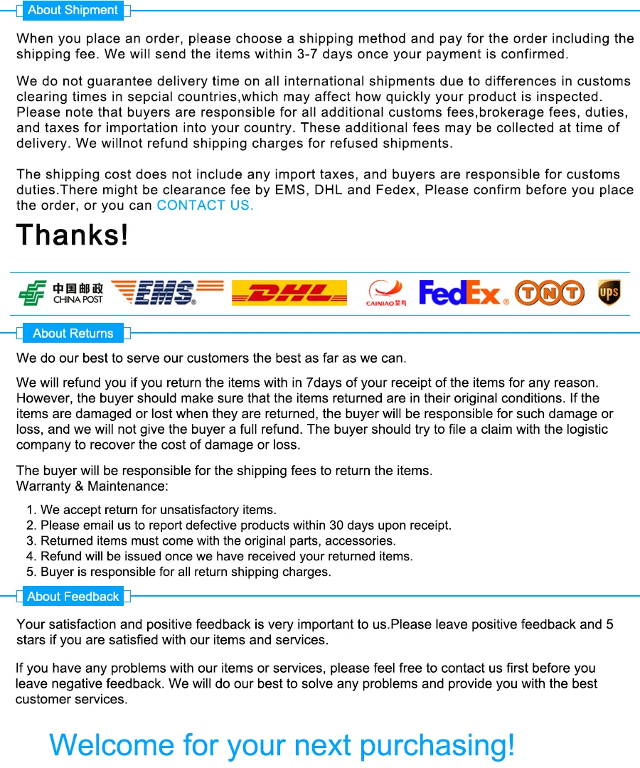 4. If you have any questions, please feel free to contact us firstly.