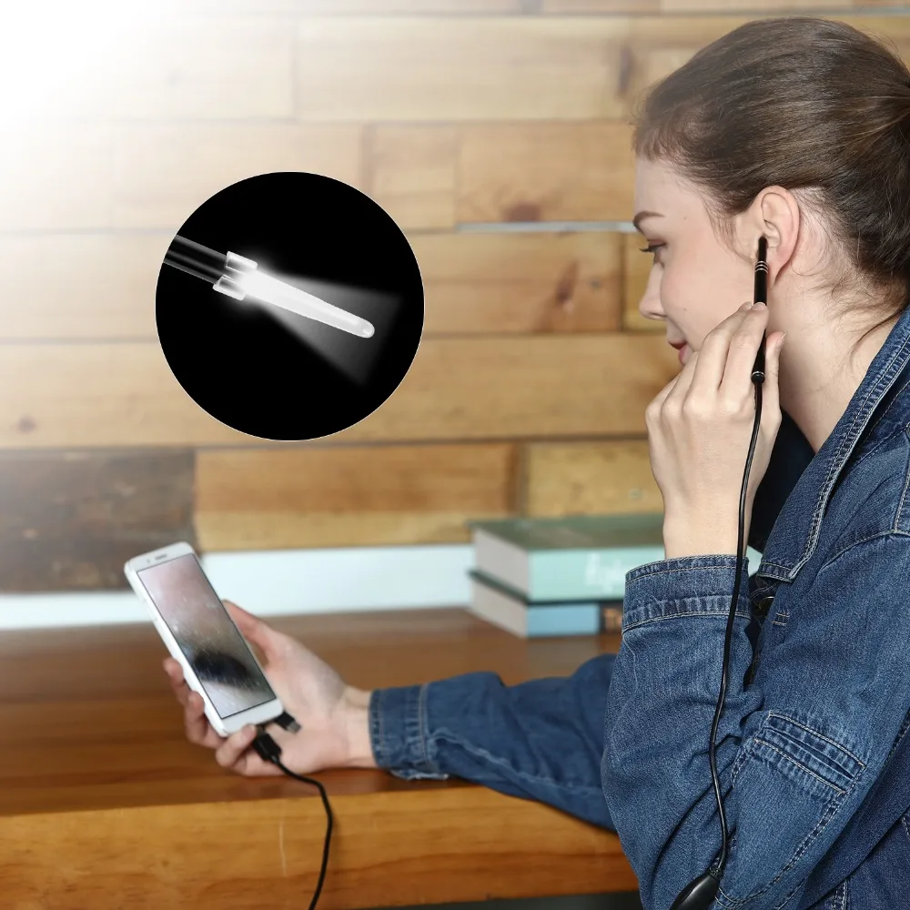 Q2: Why open APP , did not have picture ? A2 : Please make sure your phone have been open OTG function , please open OTG , and tested again . Q3 : How can know cellphone if have support OTG ? A3: Method ONE : You need to have an OTG cable. Use the OTG cable to connect phone with some equipments like keyboard, mouse, U disk, and then you can use it normally, it means that the phone has OTG function. Method TWO : some cellphone did not with OTG cable , you need go to cellphone setting find OTG function , if you cellphone did not have this OTG , before order just please contact us ! Ear Cleaning Endoscope Specifications: * Color: Black Please Notice: 1. Children and elder can’t use it alone, must be accompanied by a parent. 2. No suitable for people with narrow ear canal and please wipe with alcohol.