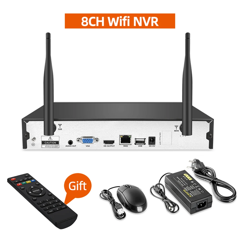 It support English,Russian,French,Turkey,Italy,Spanish,Germany,Korean,Japanese.,etc Free App for Mobile Access With easy-to-use ap and software designed for mobile access,you can see whatever the cameras see even you're thousands of miles away.Security is in palm of your hand. Package Include 1 x 8CH WIFI NVR 1 X USB Mouse 1 X Screws 1 x User manual (English) 1 X 52V Power Adapter for NVR 1 X IR Remote Controller(NO battery )